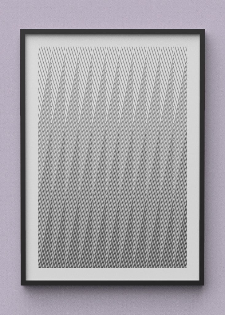 VERTIGO est un dessin généré par un algorithme. Ce dessin à été transposé au stylo sur papier grâce à une machine à commande numérique. La superposition des lignes créé des différences de plans, de couleur et de texture.